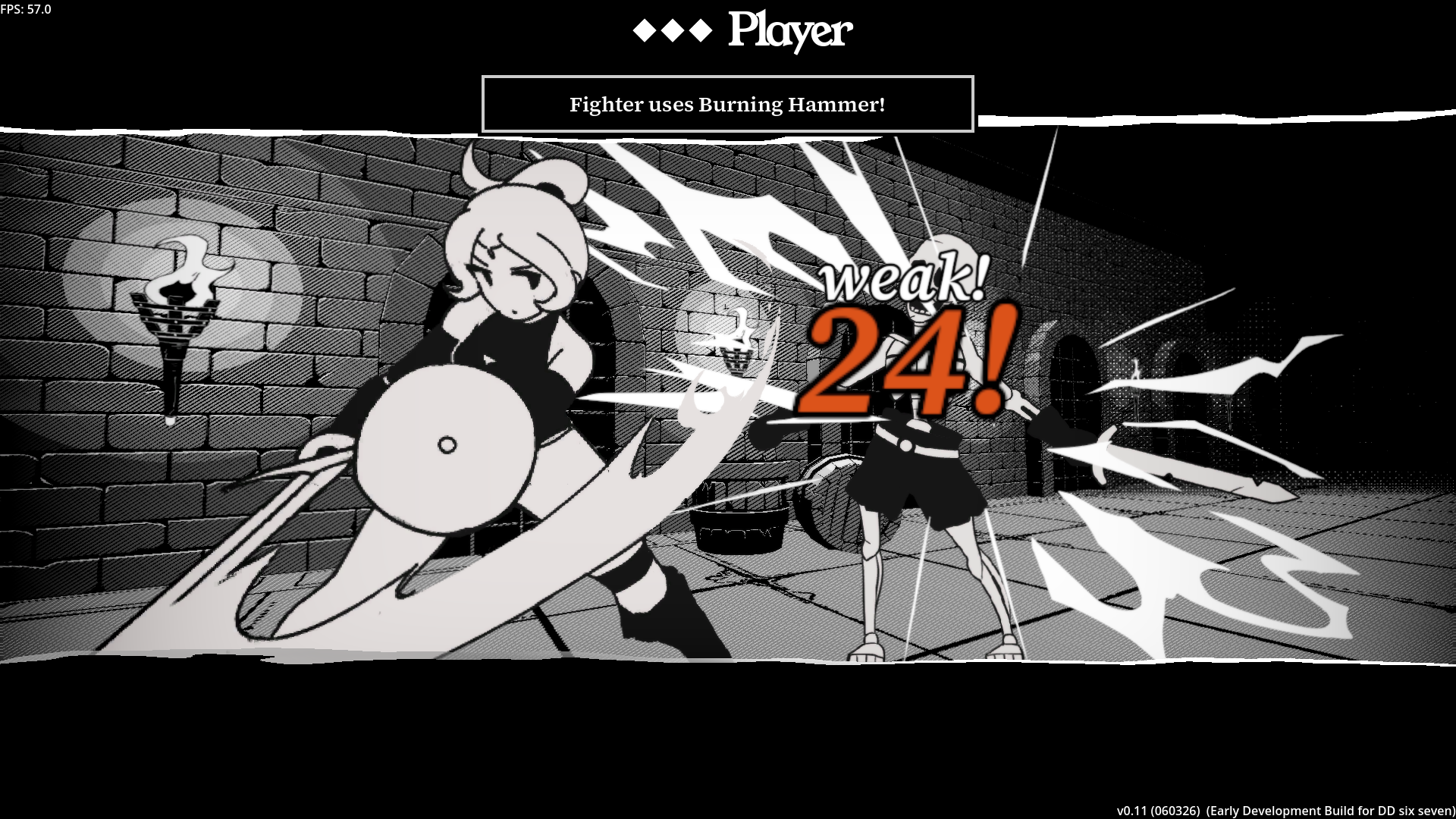 As for the character designs, I think they're well enough, but the monsters could be improved. There's a good use of contrast for the characters, but enemies like the slime and skeleton are missing this aspect. If they were brought up to say, the level of the manticore design wise, I think that would be good. As is, they kinda just blend into the background. I think in general, using this monochromatic style, this is something you want to avoid.